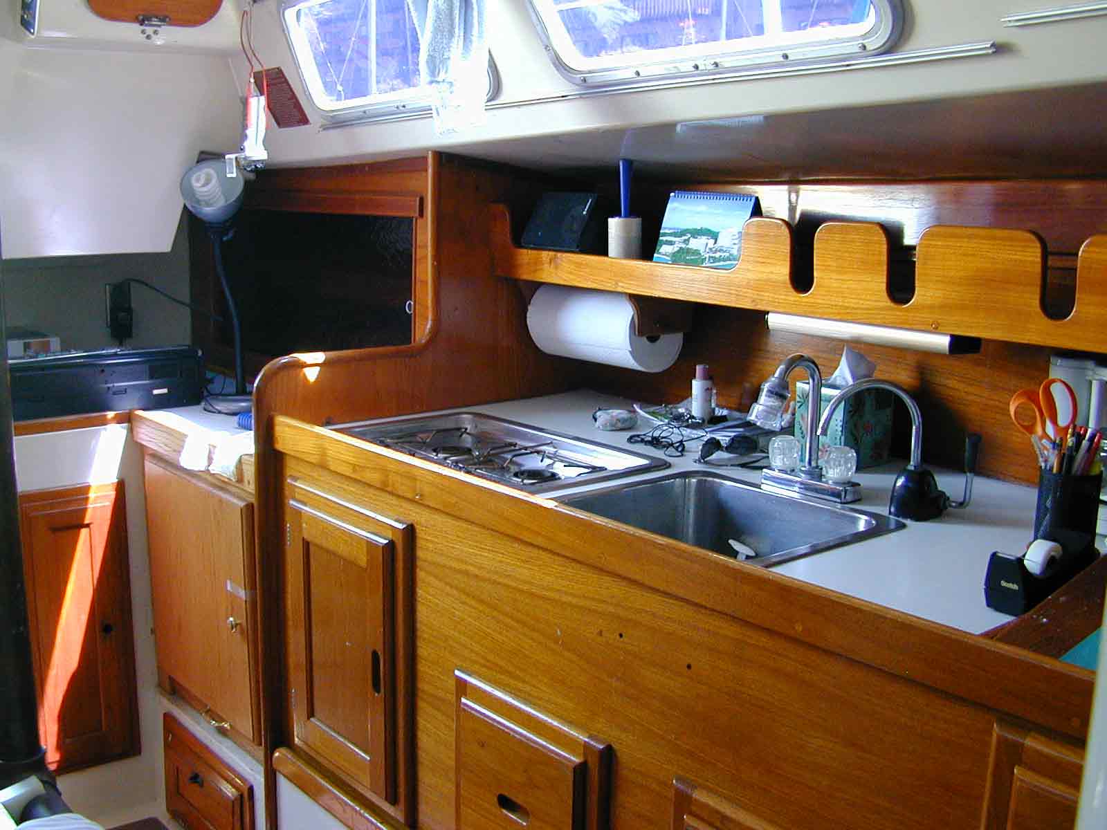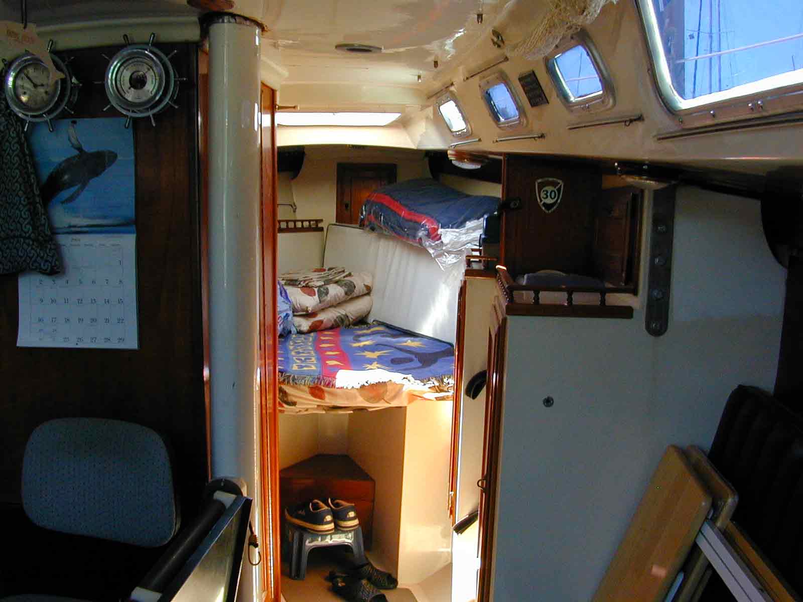 VHF radiotelephone, Knotmeter, Log, Wind speed & wind direction indicators, Autopilot,Depth sounder